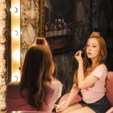 ACESSÓRIOS E BELEZA: JOIAS DOURADAS, MAQUIAGENS E PRODUTOS DE SKINCARE.